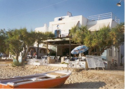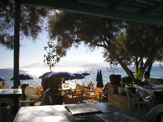 Die Taverne von Katerina und Georgios liegt direkt am Strand von Agia Anna nur 10 Meter vom Wasser entfernt.