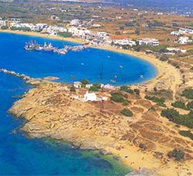 The small fishing village of Agia Anna is located about 6 km from the Chora (the main town). Here in Agia Anna, the most beautiful beach of the island begins (Plaka), extending over 5 km up to Mikri Vigla and continues after Mikri Vigla for many kilometers to the south. Behind the grassy dunes (as on the North Sea - but with better weather) are many small taverns,amazing food all day. In the evening you can enjoy the sunset over Paros. Directly from the picturesque little port of the village there are buses into townevery 30 minutes- but really there is only little reason to leave this little paradise very often. In several small supermarkets you get everything you need for a modest life and tavernas are plentiful. This place is suitable for people who rather seek peace by the sea, instead of the bustle of the city. And of course, especially for families with children. On the beaches of Plaka the clean water drops slowly and the children can play safely here.